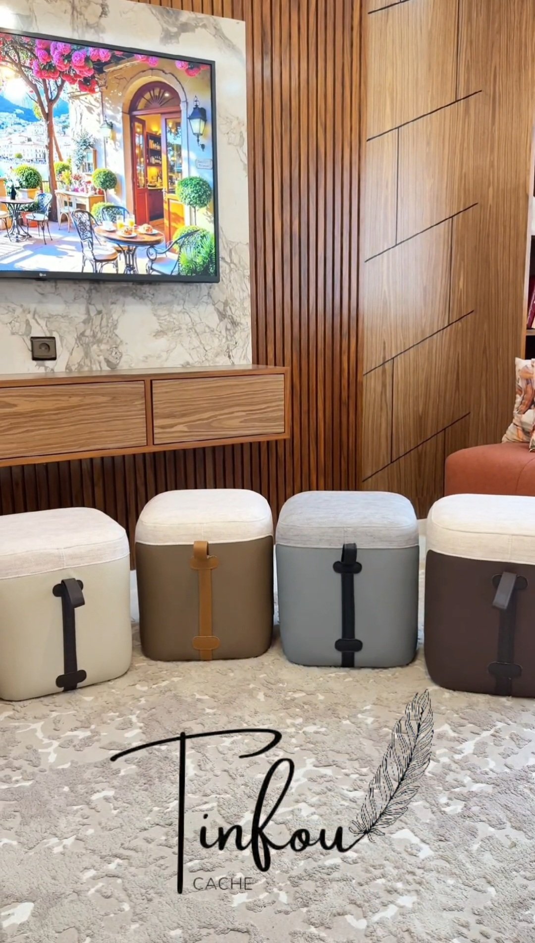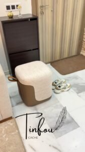 • Tissus et simili cuir de qualité : pour les poufs et assises, confortables et faciles à entretenir.